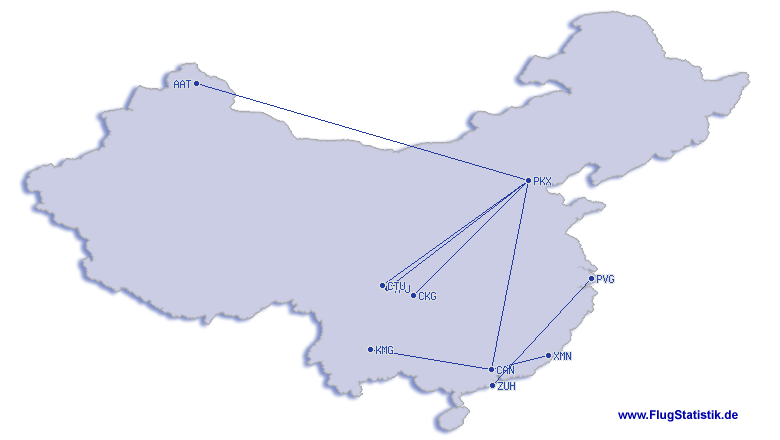 Korteste flyvning:  508 km, 2:02 h, Xiamen (Gaoqi) - Guangzhou (Baiyun), 10.12.2025