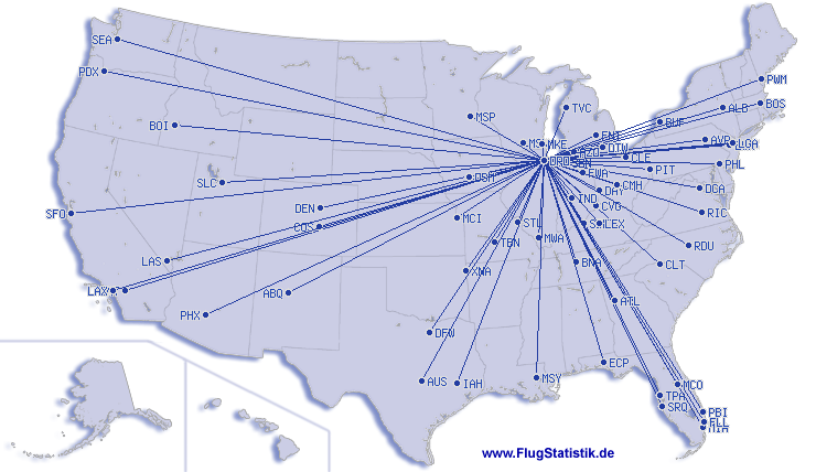 Najkraci let: 108 km, 1:27 h, Milwaukee (General Mitchell) - Chicago (O'Hare), 17.04.2026