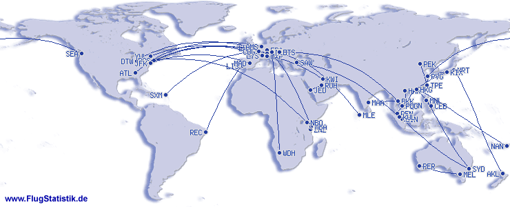 | # | Flystrekning | Antall | Prosent |
