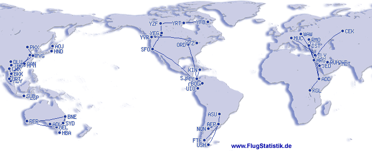 | # | เส้นทางบิน | ครั้ง | เปอร์เซ็นต์ |