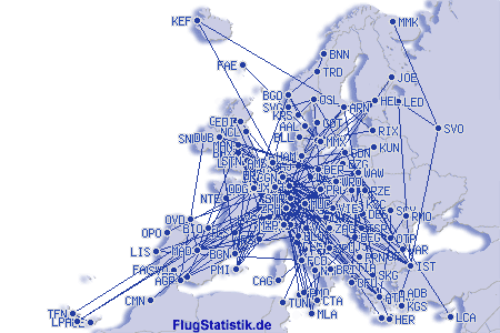 | Št. različnih letališč | 282 |