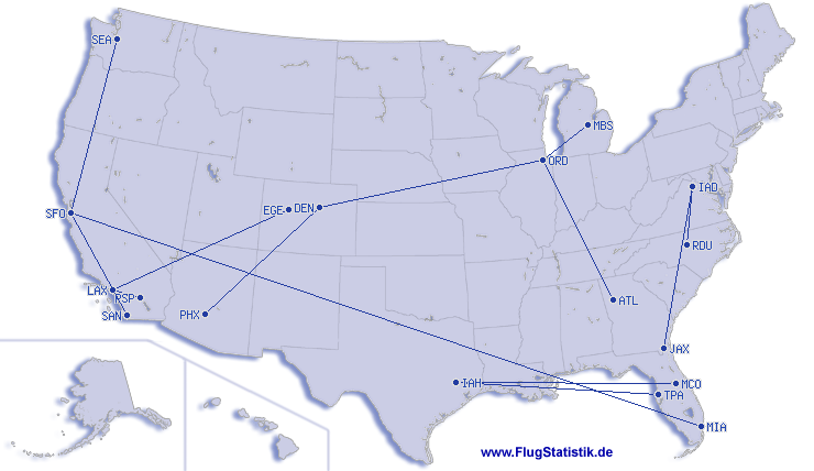 | Št. različnih letališč | 22 |