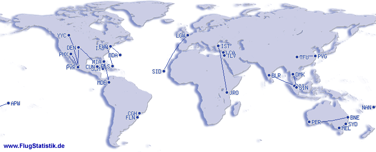 | # | Vliegroute | Aantal | % |