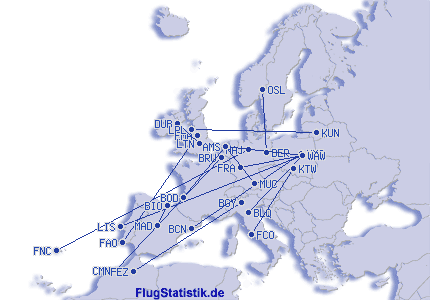 | Totalt antal flygsträckor | 65 |