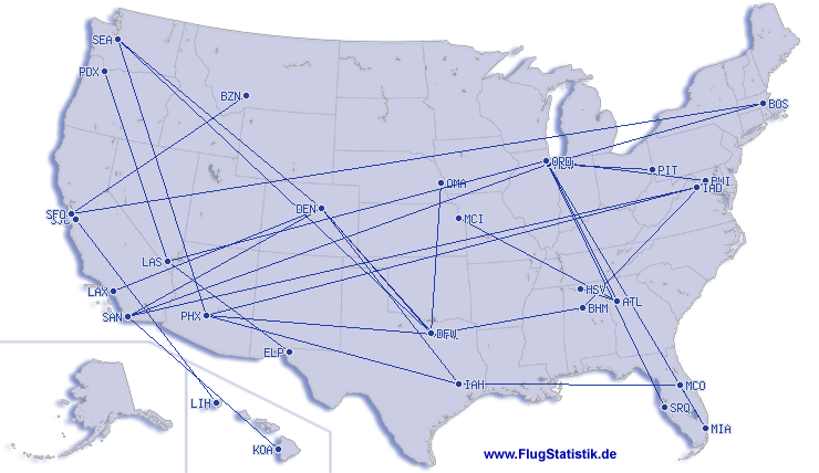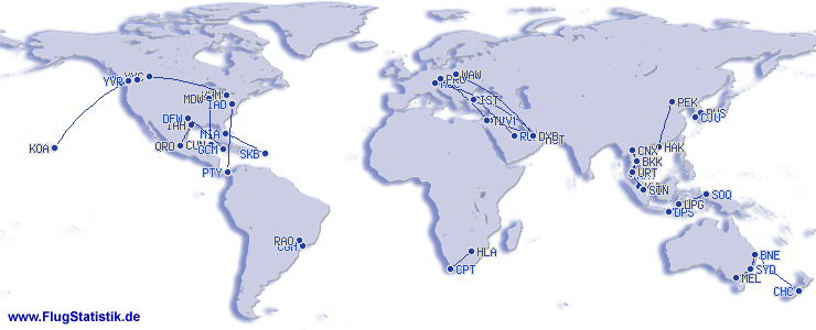 | Totalt antal flygsträckor | 42 |