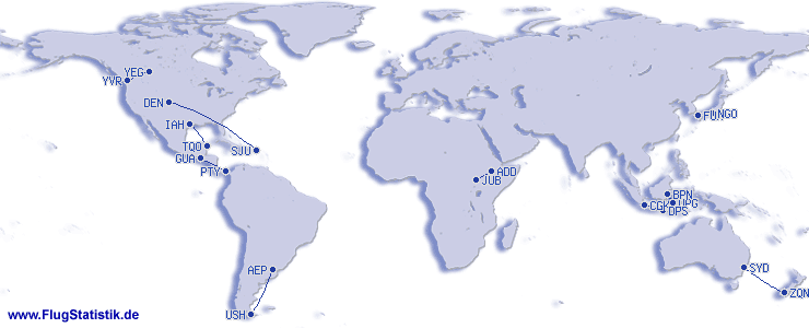 | # | เส้นทางบิน | ครั้ง | เปอร์เซ็นต์ |
