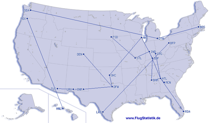 | Št. različnih letališč | 72 |