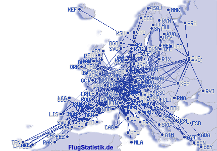 | Totalt antal flygsträckor | 1096 |