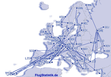 | Št. različnih letališč | 302 |